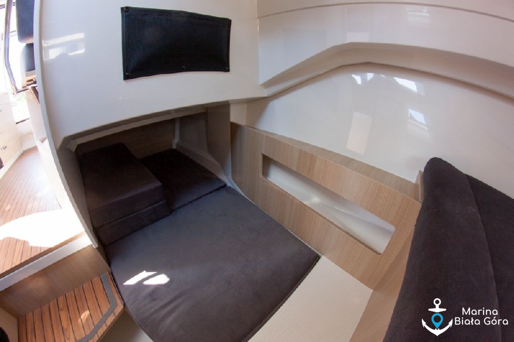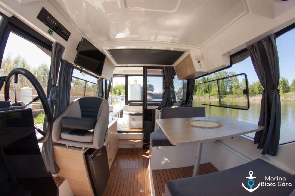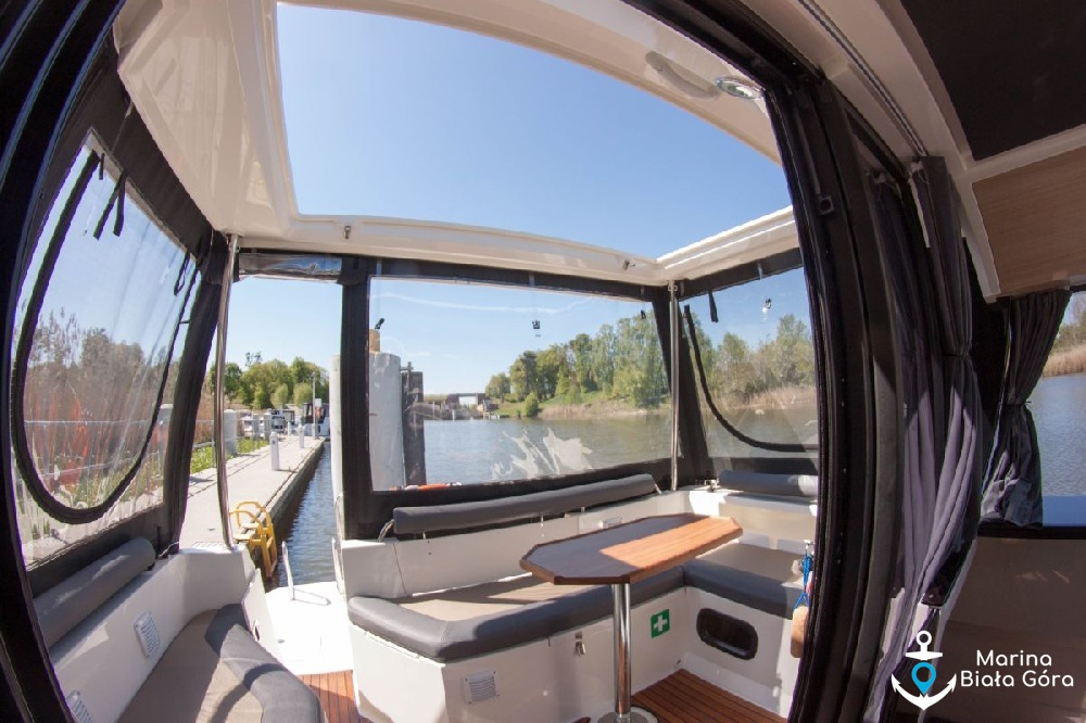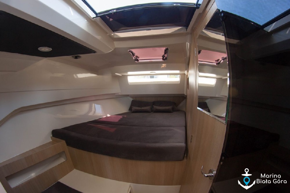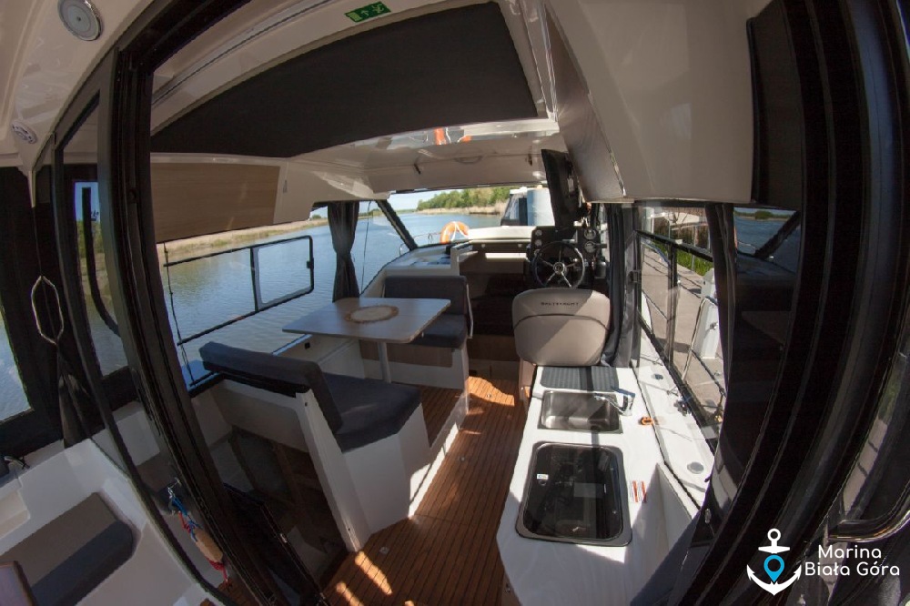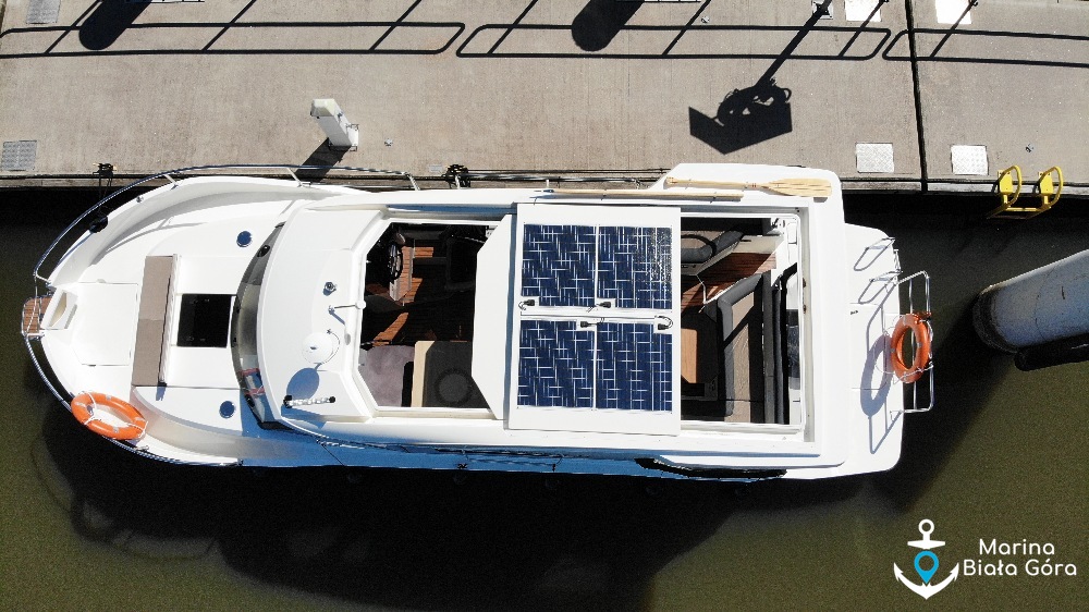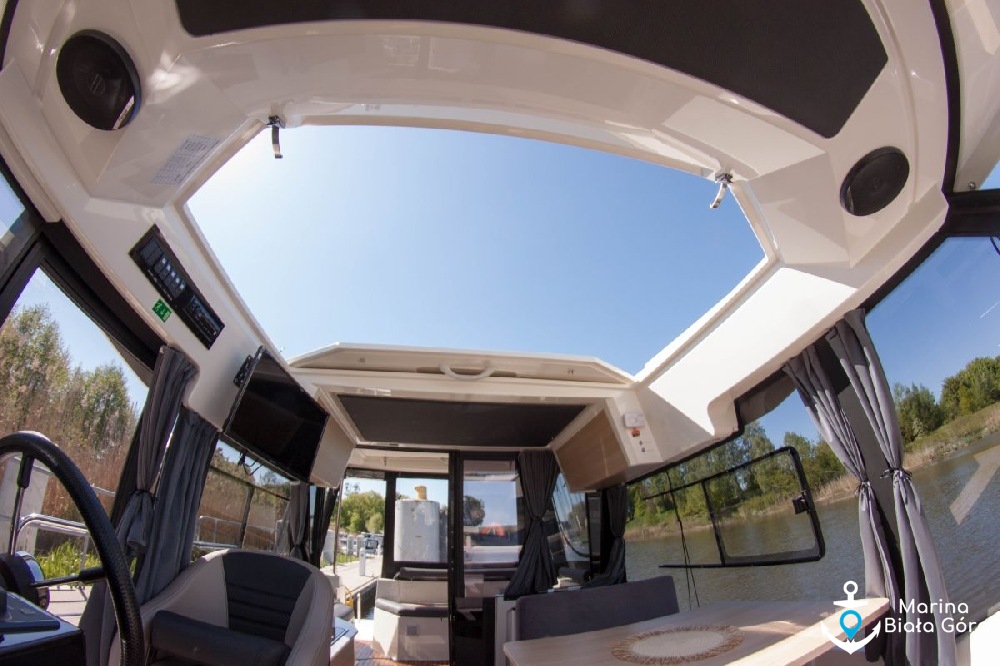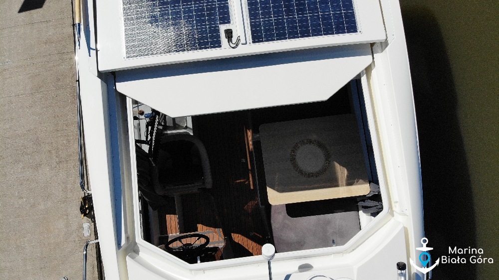 Jacht Suncamper 31 charakteryzuje się panoramicznymi szybami oraz doskonałym widokiem wokół jachtu - panoramiczne szyby, przeszklone przesuwane drzwi oraz bark ścianek działowych umożliwiają widok 360 stopni wokół jachtu praktycznie z każdego miejsca na pokładzie łodzi. To nie jedyna innowacyjność na tym jachcie, Suncamper 31 posiadają przesuwany dach nad kokpitem i mesą ! Teraz wnętrze jednostki będzie jeszcze bardziej doświetlone.