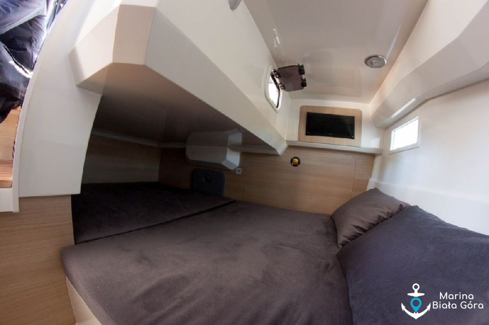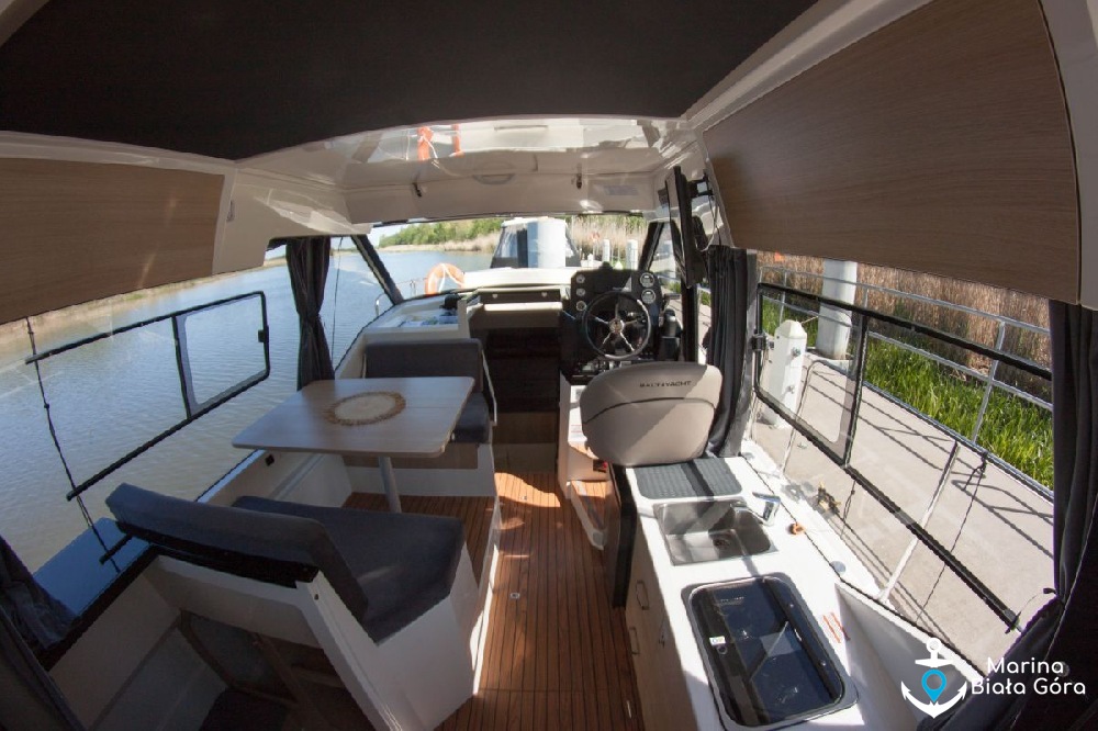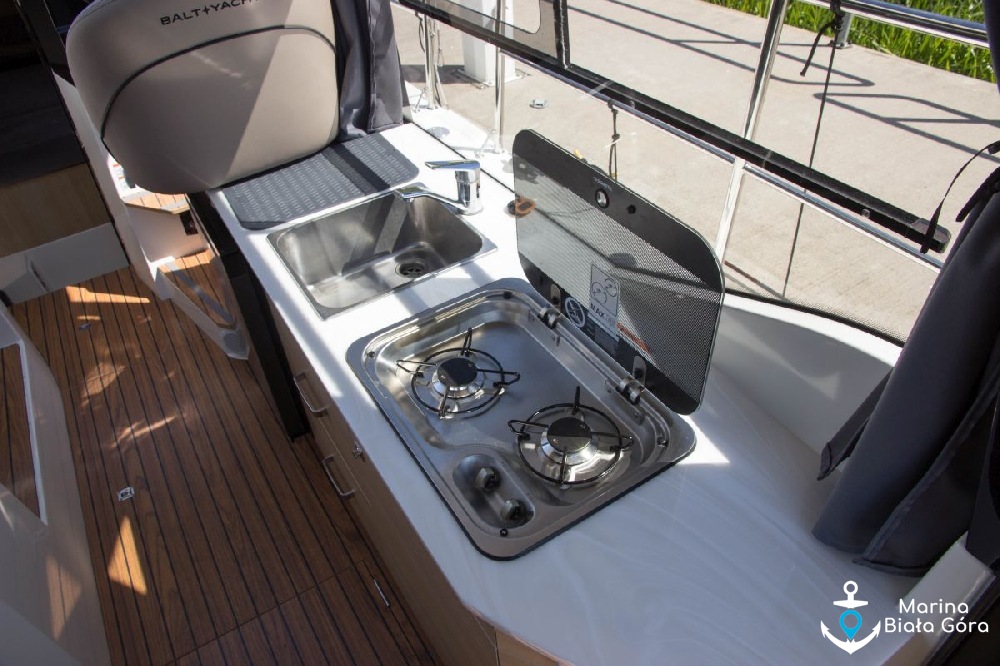 Suncamper 31 to kolejna nasza propozycja do czarteru ze stoczni Balt Yacht. Suncamper 31 to nowa konstrukcja, zaprezentowana stosunkowo niedawno, po raz pierwszy w lipcu 2024 r. na targach Polboat Yahting Festival w Gdyni. Suncamper 31 to następca cenionego Suncampera 30. Nowy jednostka występuje w wersji z krótkim oraz przedłużonym trapem rufowym. Oferujemy Państwu do czarteru jacht Suncamper 31 w wersji z przedłużonym trapem rufowym, na którym zmontowano dodatkowy reling rufowy umożliwiający zabieranie na pokład rowerów lub desek Sup.