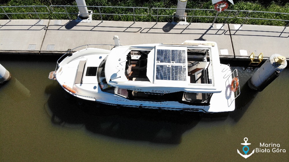 Nasz jacht Suncamper 31 jest bardzo dobrze wyposażony, na wyposażeniu min. ogrzewanie olejowe Webasto, duża lodówka z zamrażalnikiem, bojler z ciepłą wodą, wskaźniki poziomu cieczy, naładowania akumulatorów, echosondę z ploterem maps GPS, radio z BT i 4 głośnikami, antenę DVBT z TV LED, radio morskie oraz pełne wyposażenie kuchenne. Jednostka jest autonomiczna oprócz dużych zbiorników na wodę, fekalia i paliwo, posiada zestaw paneli fotowoltaicznych oraz podwójne baterie hotelowe.