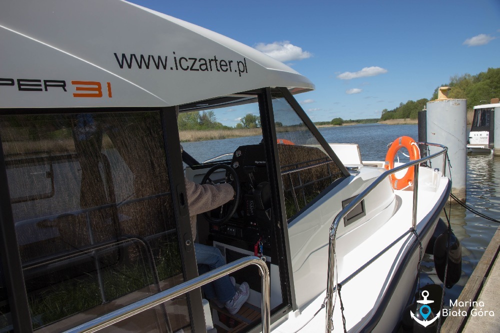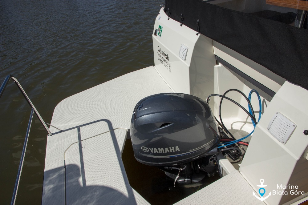Jacht motorowy Suncamper 31 został wyposażony w niezawodny silnik uciągowy Yamahy o mocy 50 KM ze starowaniem hydraulicznym oraz dwa mocne stery strumieniowe (dziobowy i rufowy), co znacznie ułatwia wszelkie manewry portowe.